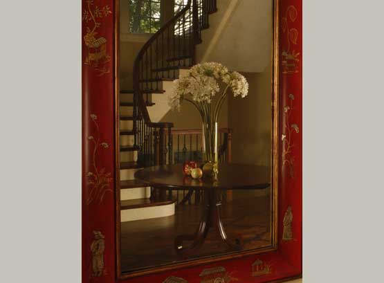 A beautiful collection of European antiques sets the stage for a traditional interior that is alive with color, pattern and refined architectural lines.